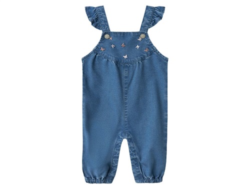 Disse overall-bukser er lavet i blød denim med et let slidt udtryk, som giver et afslappet look. De har justerbare seler og trykknapper i skridtet, hvilket gør dem nemme at tage af og på.