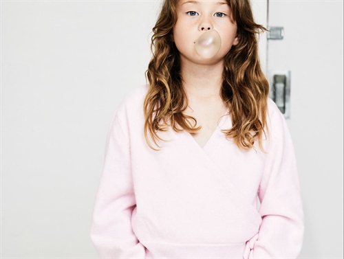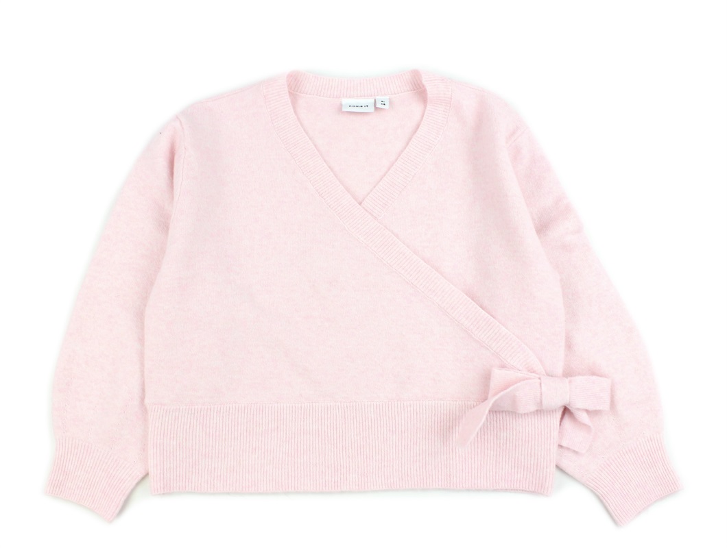 Strikbluse med wrap detalje i farven parfait pink fra Name It.