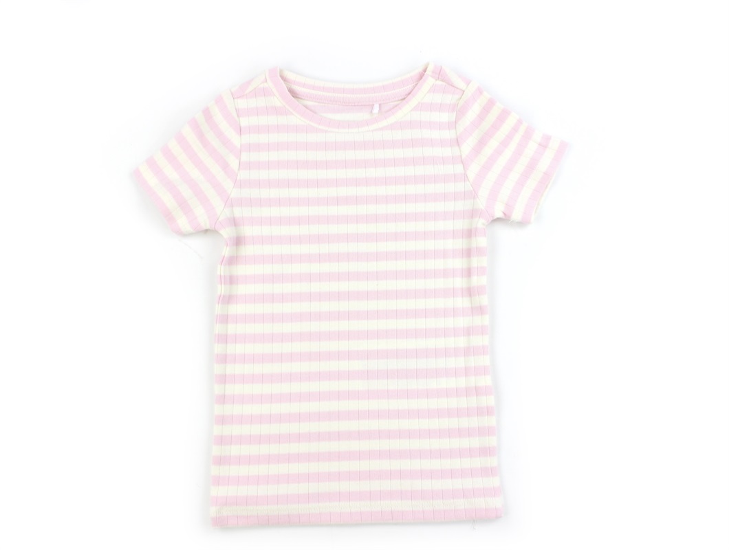 Kortærmet top med striber i farven parfait pink fra Name It.