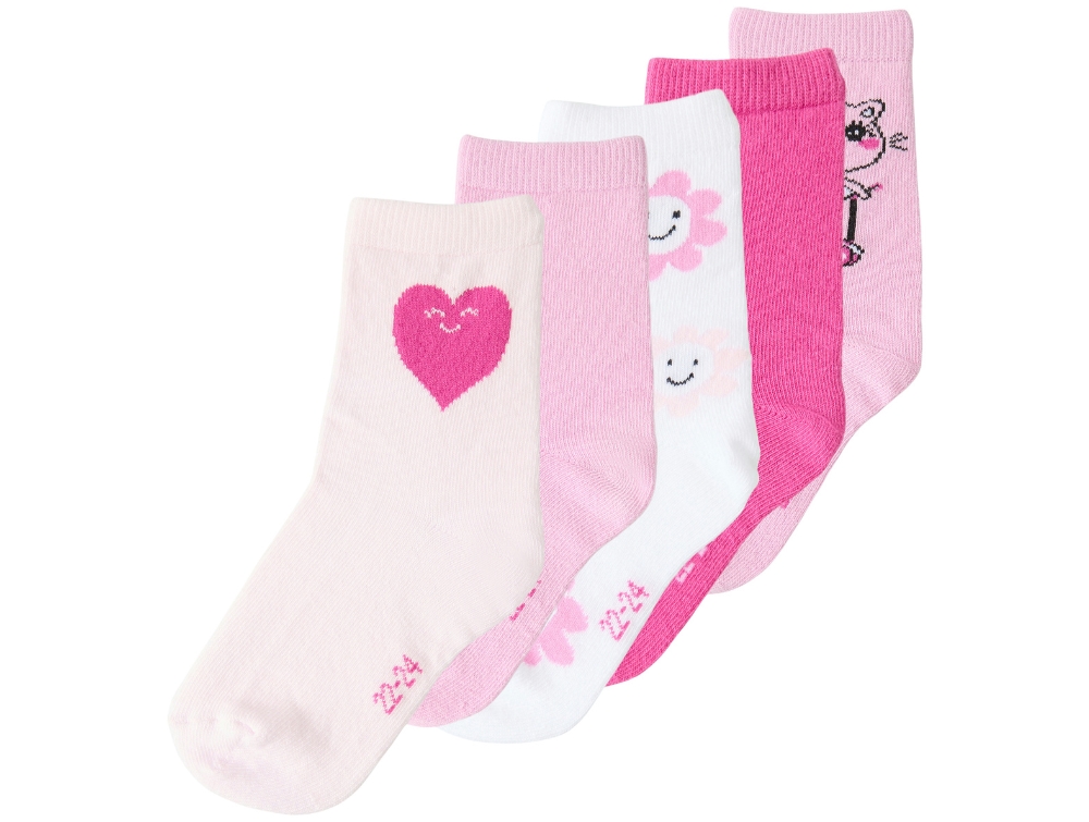 5 par bomuldsstrømper i forskellige farver og med forskellige motiver fra Name It.