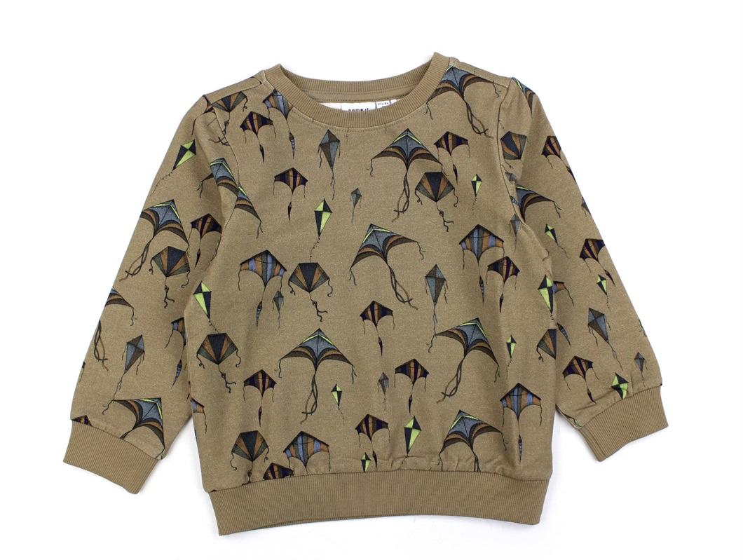 Sweatshirt i farven petrified oak med skønt drageprint fra Name It.