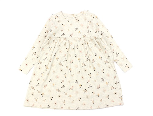 Kjole i ribkvalitet i farven peyote melange med glitterblomster fra Name It.
