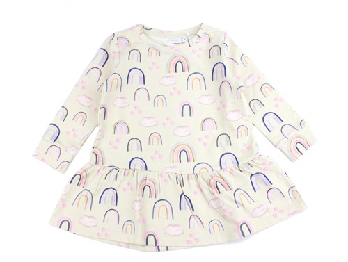 Sweatkjole i farven peyote melange med regnbueprint fra Name It.