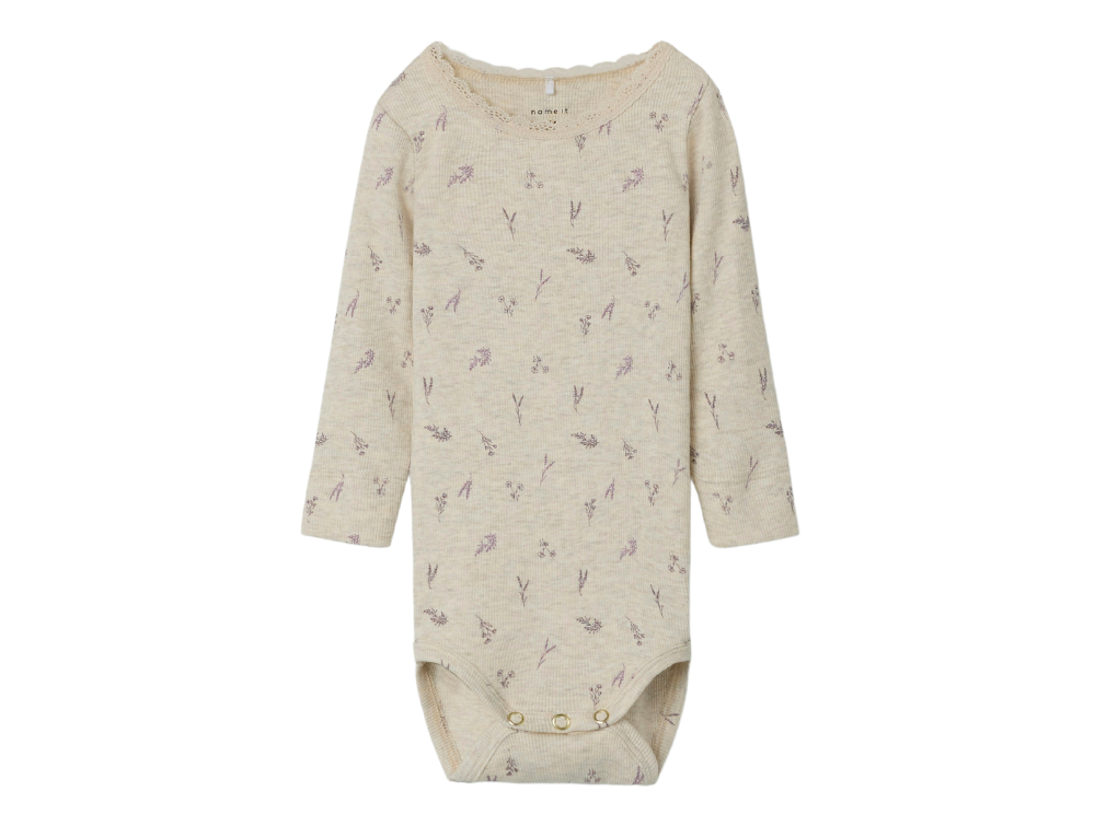 Body i farven peyote melange med print af grene og blomster fra Name It.