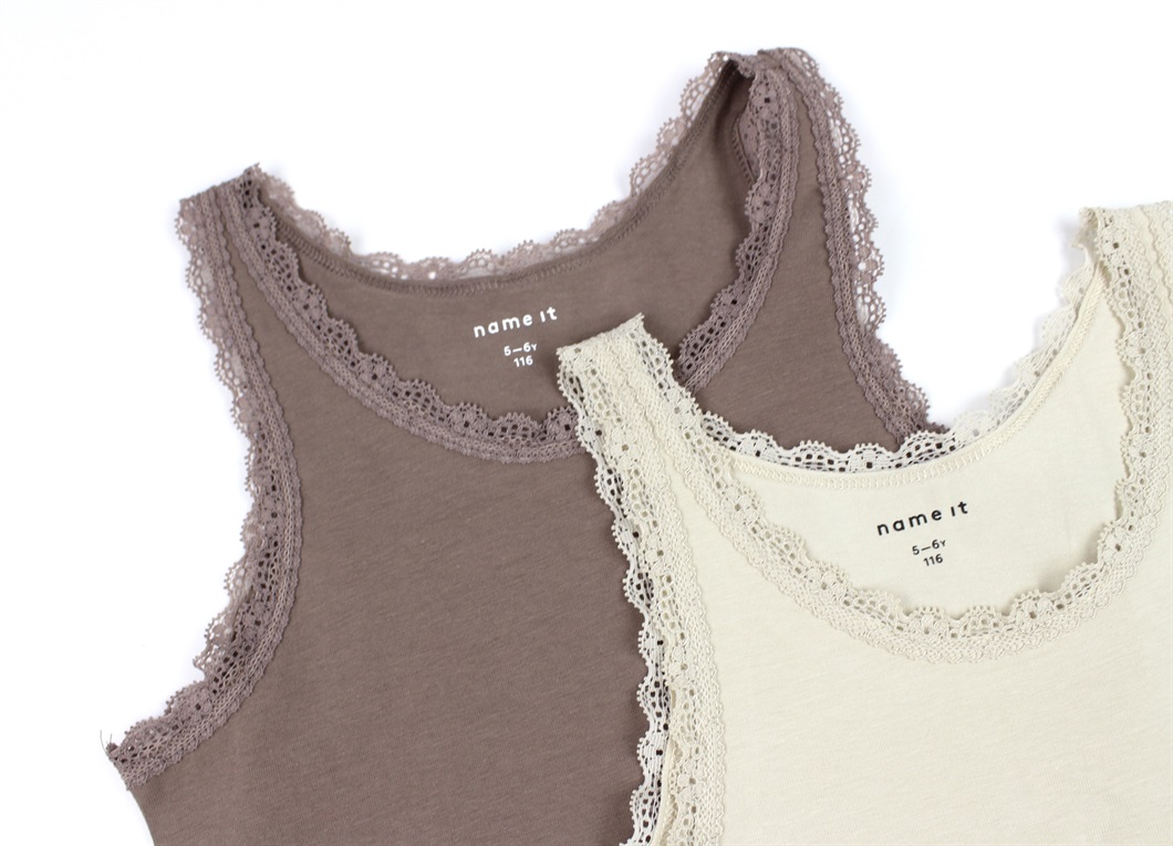 To undertrøjer i farven peyote med blondekant fra Name It.