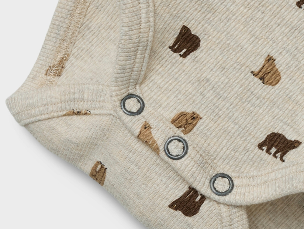 Produceret i en blød rib kvalitet i 57% økologisk bomuld, 38% modal, 5% elastan.