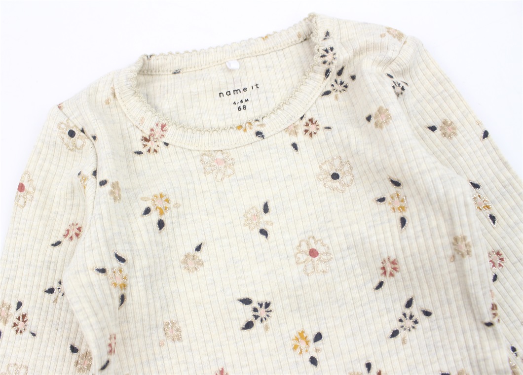 Body i farven peyote melange med fint blomsterprint og glimmer fra Name It.