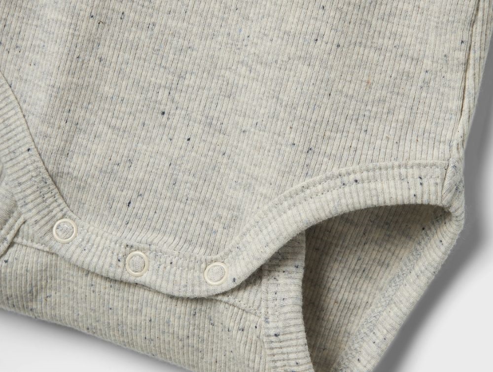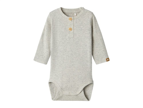 Body i farven peyote melange med knapper fra Name It's babykollektion. Farven er lidt mindre grå og lidt mere beige end billedet viser.