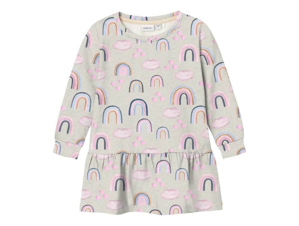 Sweatkjole i farven peyote melange med regnbueprint fra Name It.