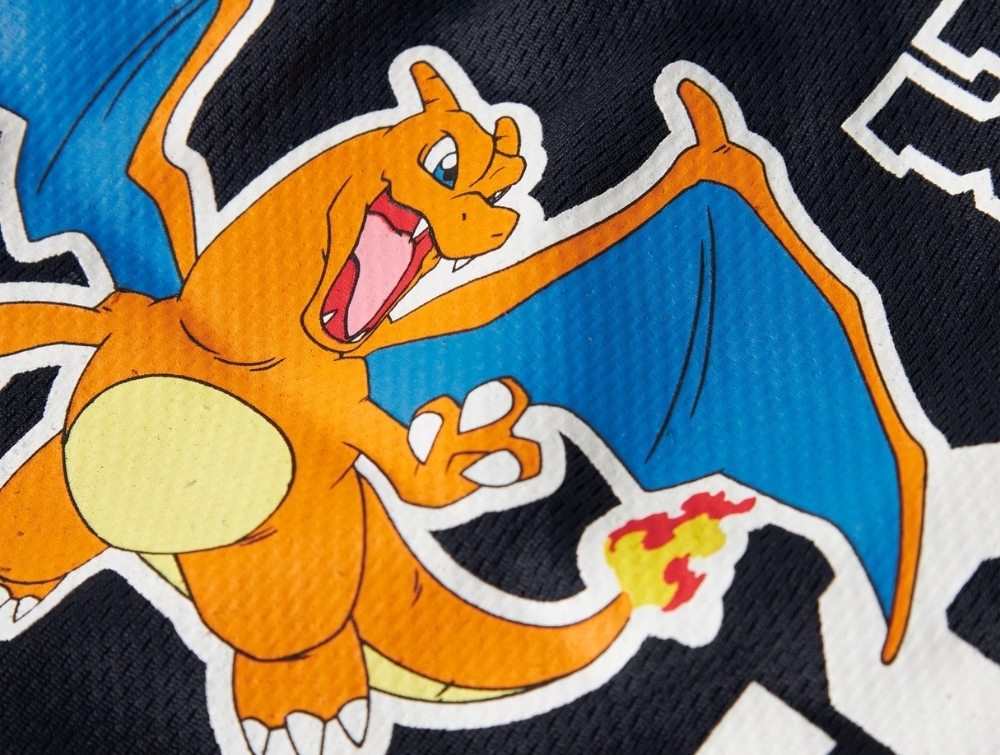 På benet ses teksten “Pokémon Trainer” sammen med figuren Charizard fra det populære univers.