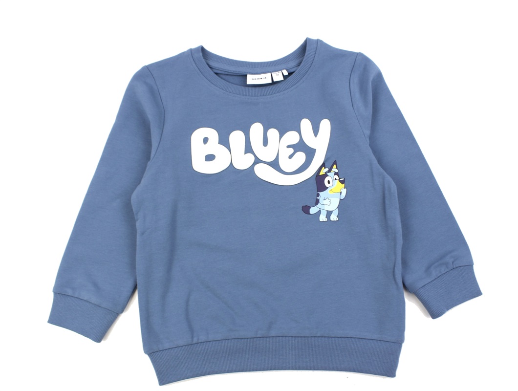 Sweatshirt i farven provincial blue med Bluey-print fra Name It.