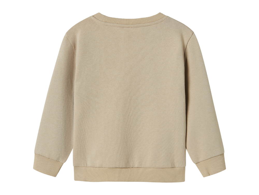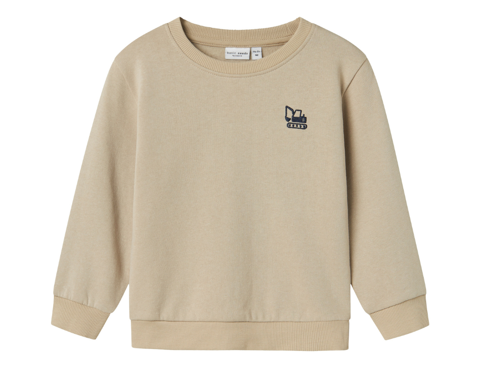 Sweatbluse i farven pure cashmere med broderet gravemaskine fra Name It.