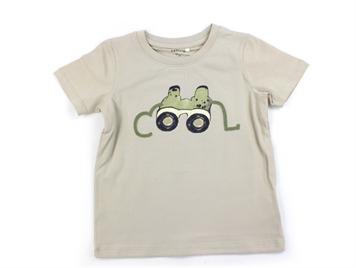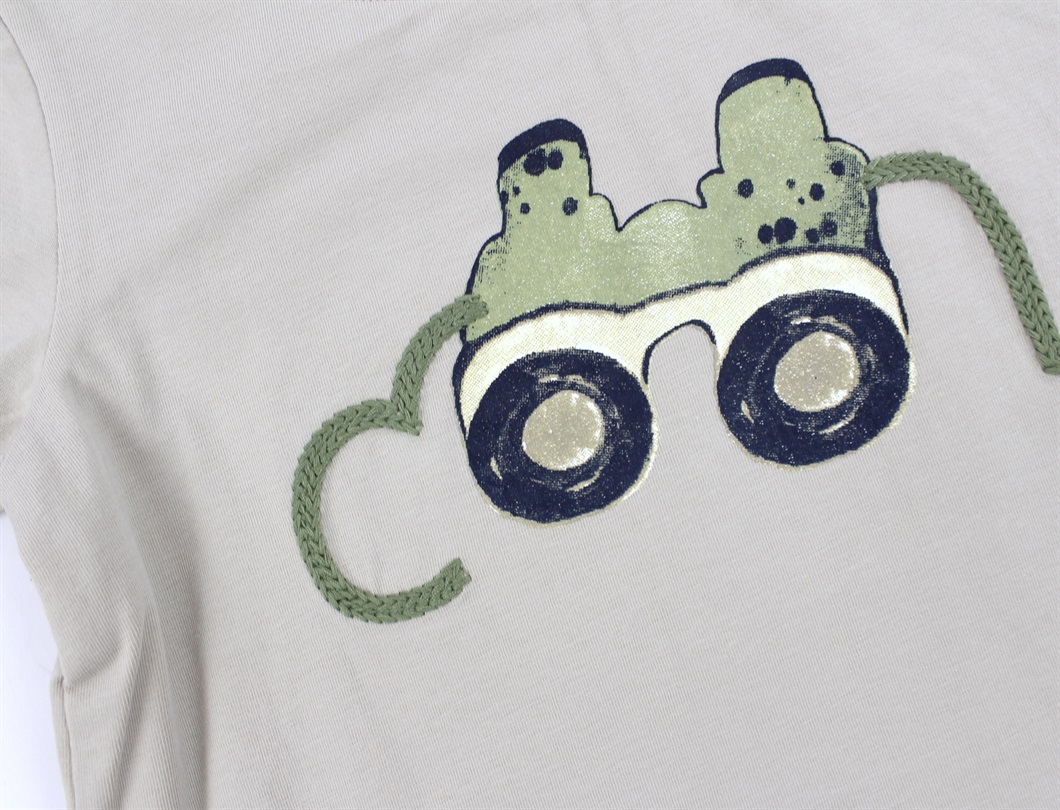 T-shirt i farven pure cashmere med kameraprint og applikation fra Name It.