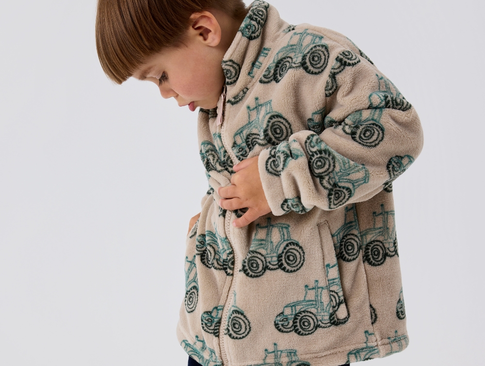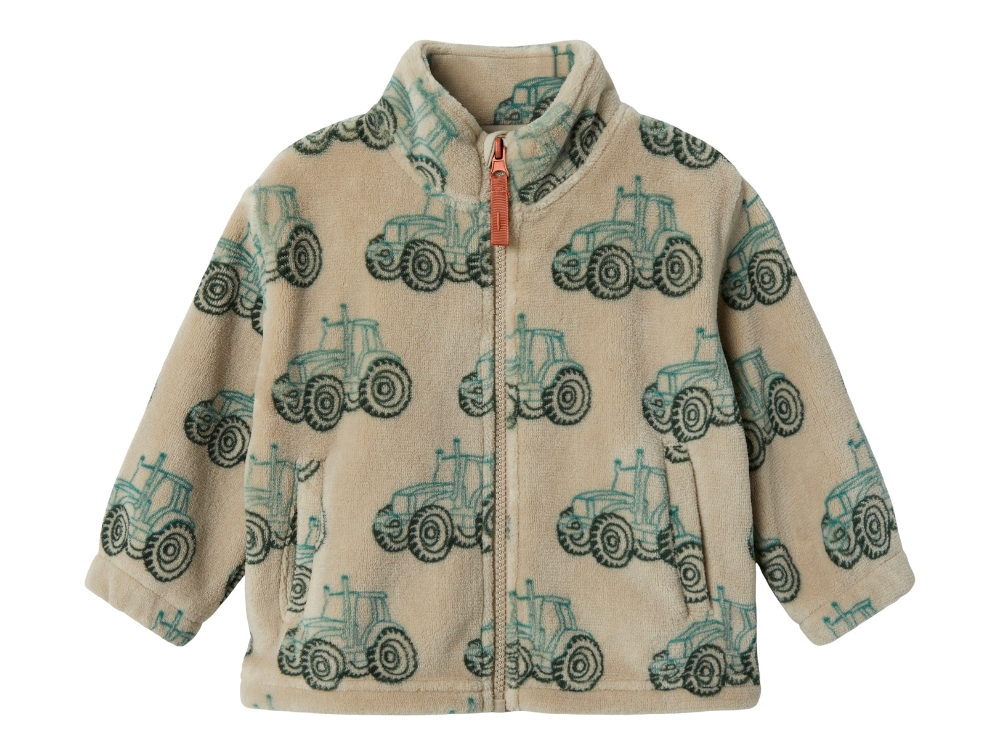Teddyjakke/fleecejakke med traktorprint fra Name It.