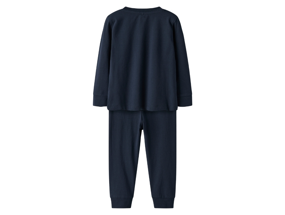 Name It natdragt navy blazer med Pokémon print foranDetalje af Pikachu print på navy natdragt fra Name ItName It natdragt navy blazer med Pokémon motiv på bukserName It natdragt navy blazer set bagfra