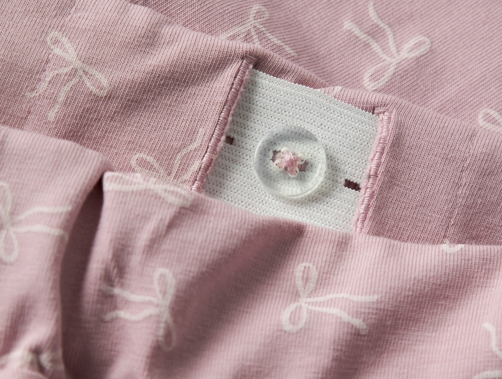 Sættet er lavet i blød, strækbar jersey af økologisk bomuld, som giver høj komfort og god bevægelsesfrihed – perfekt til hyggelige nætter.
