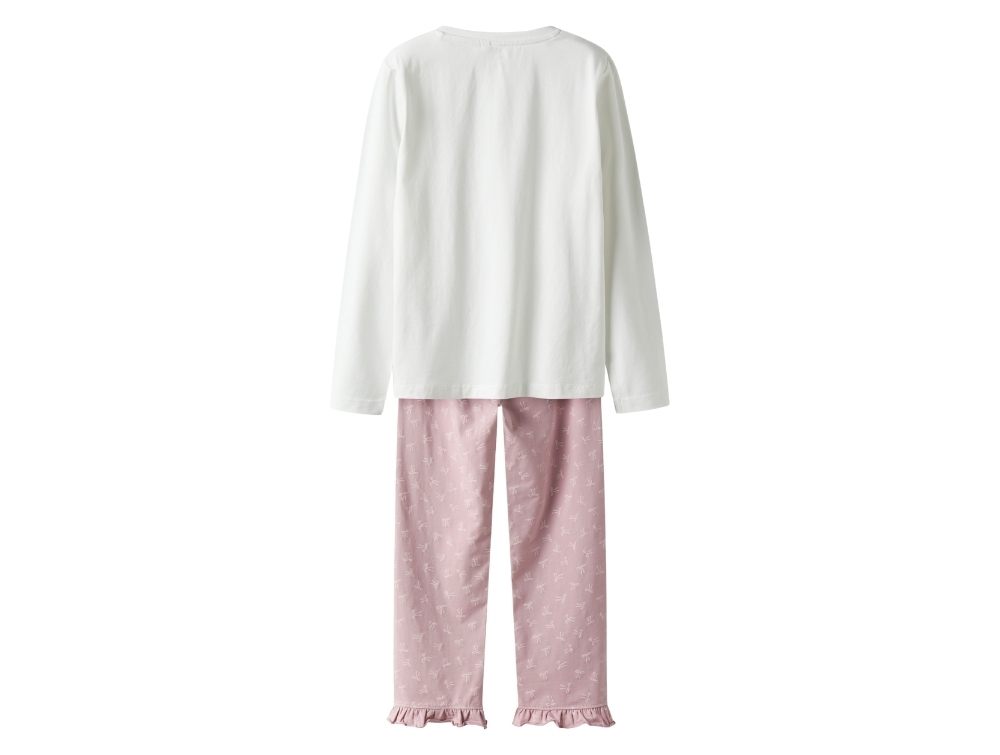 Pyjamasæt fra Name It i hvid og lyserød (keepsake lilac) nuance.