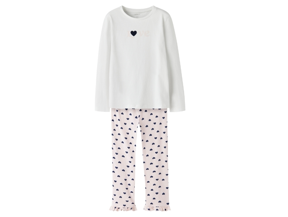 Name It pyjamas i rosa med hjerter og flæser