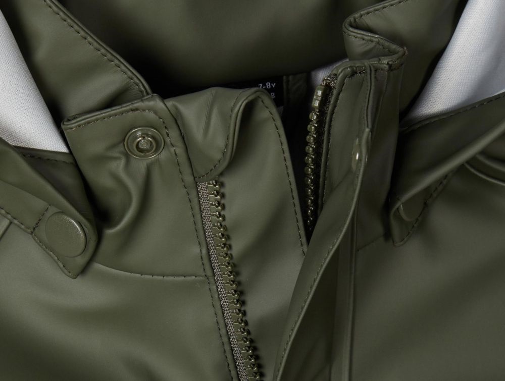 Jakken har aftagelig hætte med trykknapper og lukkes med lynlås og trykknapper.