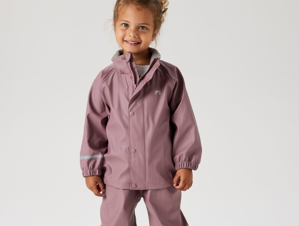 Mørklilla regnsæt fra Name It med refleksdetaljer og aftagelig hætte