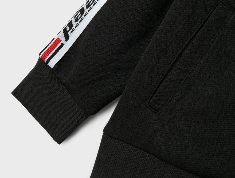 Dreng klædt i sort sweatcardigan med høj krave og lynlås fra Name It 13242669 blackSort sweatcardigan med høj krave, hvid detaljer og lynlås fra Name It 13242669 blackSort sweatcardigan med høj krave, hvide kontrastdetaljer og lynlås fra Name It 13242669 blackSort sweatcardigan med rib kanter og hvidt bånd med striber og tekst på ærmerne fra Name It 13242669 blackDreng klædt i sort sweatcardigan hvide kontrastfaret bånd med speed-detaljer fra Name It 13242669 black