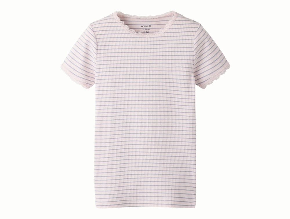 Name It rib t-shirt tender touch med striber og blonder