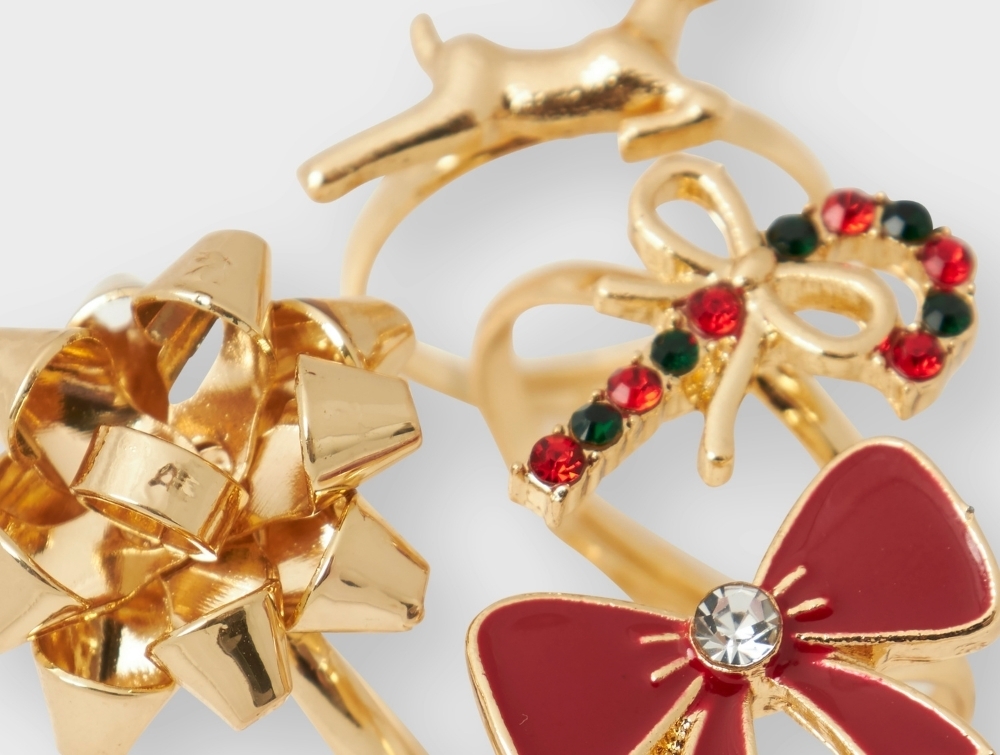 Juleinspireret sæt med 4 ringe i guldfarve fra Name It.