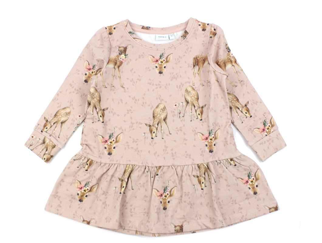 Sweatkjole i farven rose smoke med bambi-print fra Name It.