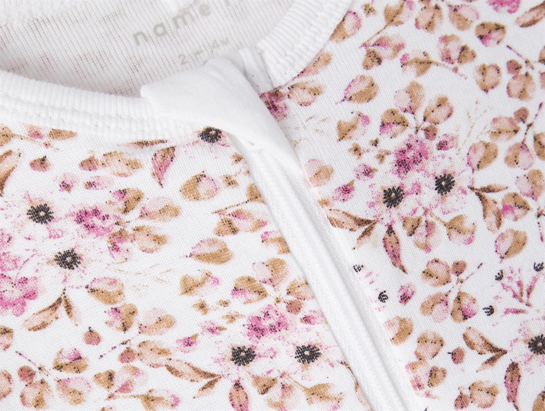 Sættet indeholder én ensfarvet natdragt med blomsterlogo og én natdragt med blomsterprint.