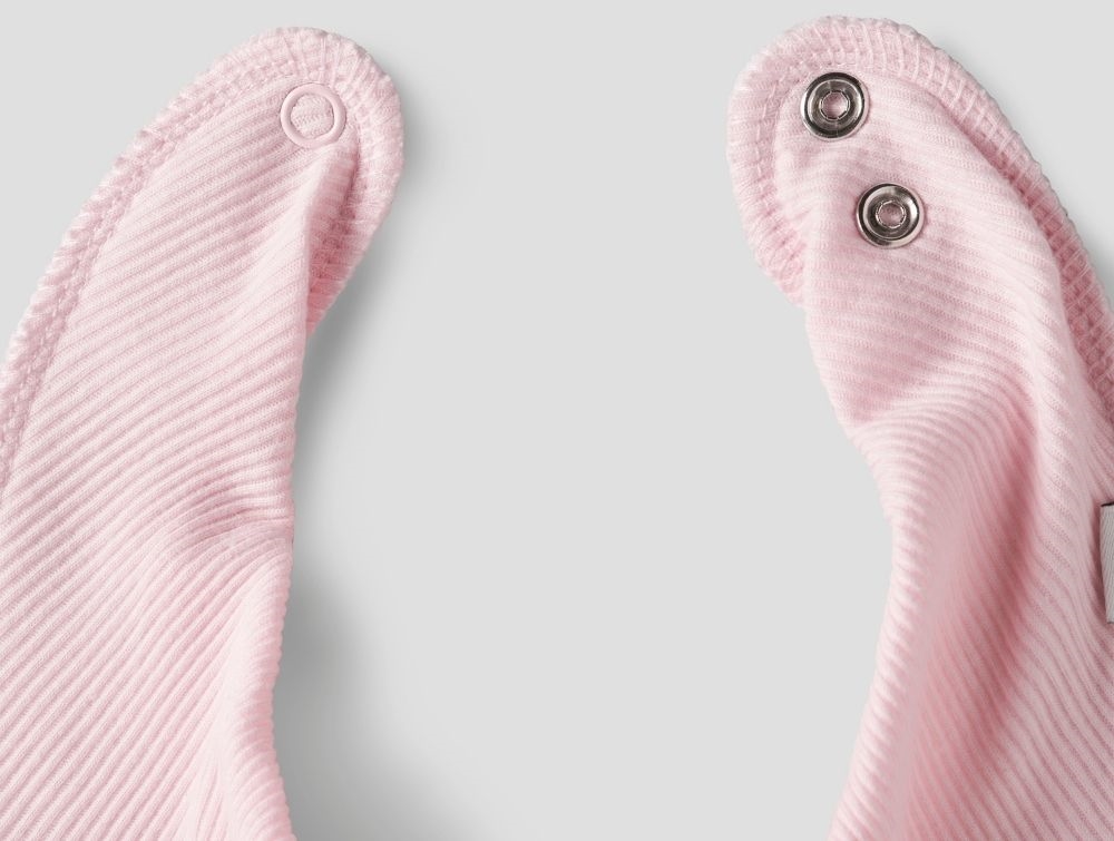 3-pak savlesmække fra Name It i farverne sun kiss, ballerina og cameo pinkSavlesmæk fra Name It i farven sun kiss med rib og trykknapSavlesmæk fra Name It i farven cameo pink med ribstrukturNærbillede af trykknapper og ribstruktur på rosa Name It savlesmæk