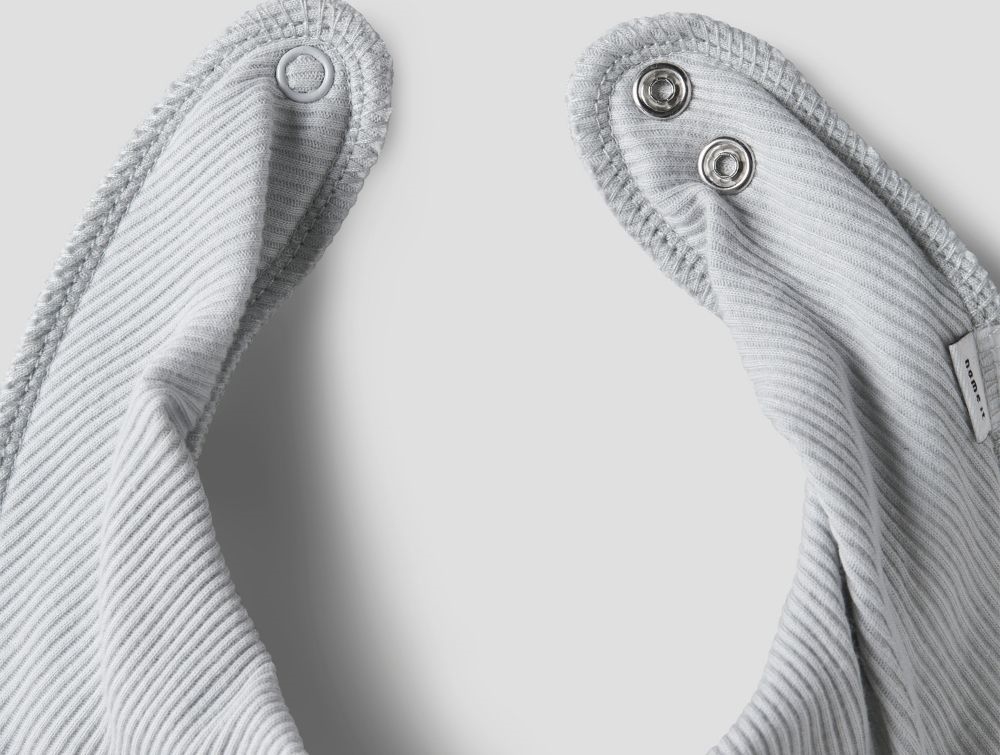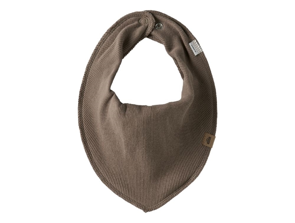 Savlesmækkene er fremstillet i to lag: en ribbet forside i 100% økologisk bomuld og en blød fleecebagside i 100% polyester. Den trekantede form og trykknaplukningen i nakken gør dem både praktiske og behagelige at bruge.