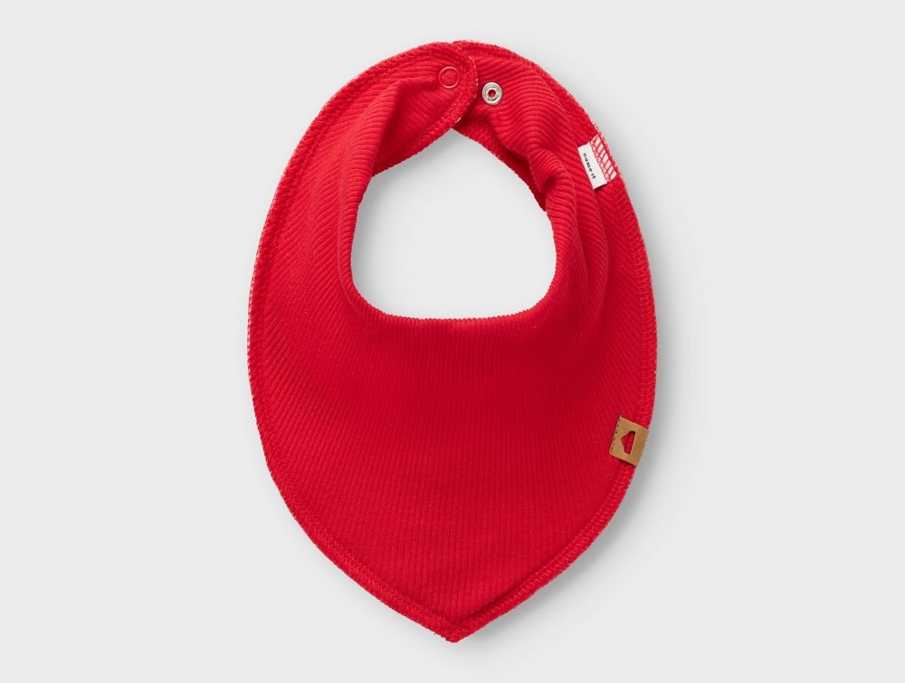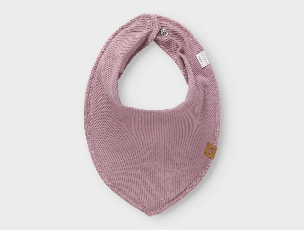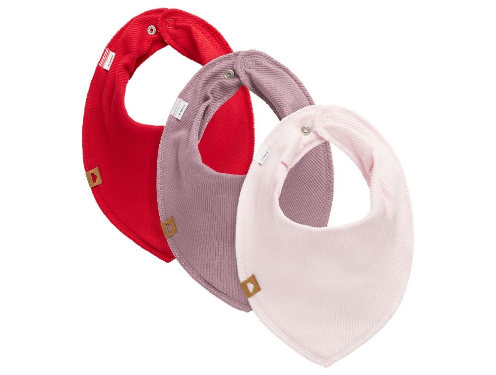 Praktisk og blød savlesmæk fra Name It i en let og strækbar jerseykvalitet med en blød fleecebagside, der beskytter barnets tøj. Pakken indeholder tre trekantede hagesmække i farverne rød, lys violet og mørk violet.
