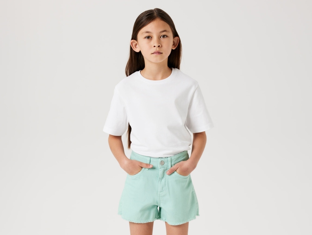 Mintgrønne shorts fra Name It i twillvævet bomuldsblanding med justerbar talje.