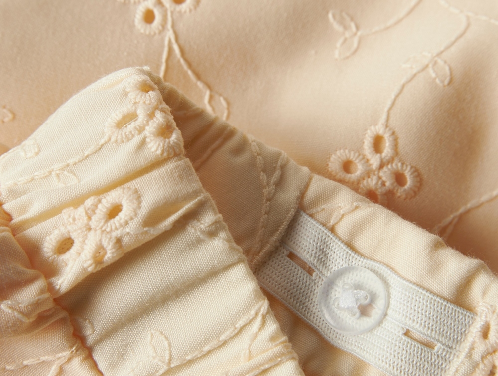 broderede shorts fra Name It i lys gul nuance med justerbar taljeelastik og justering i taljen på broderede buttercream shorts fra Name It