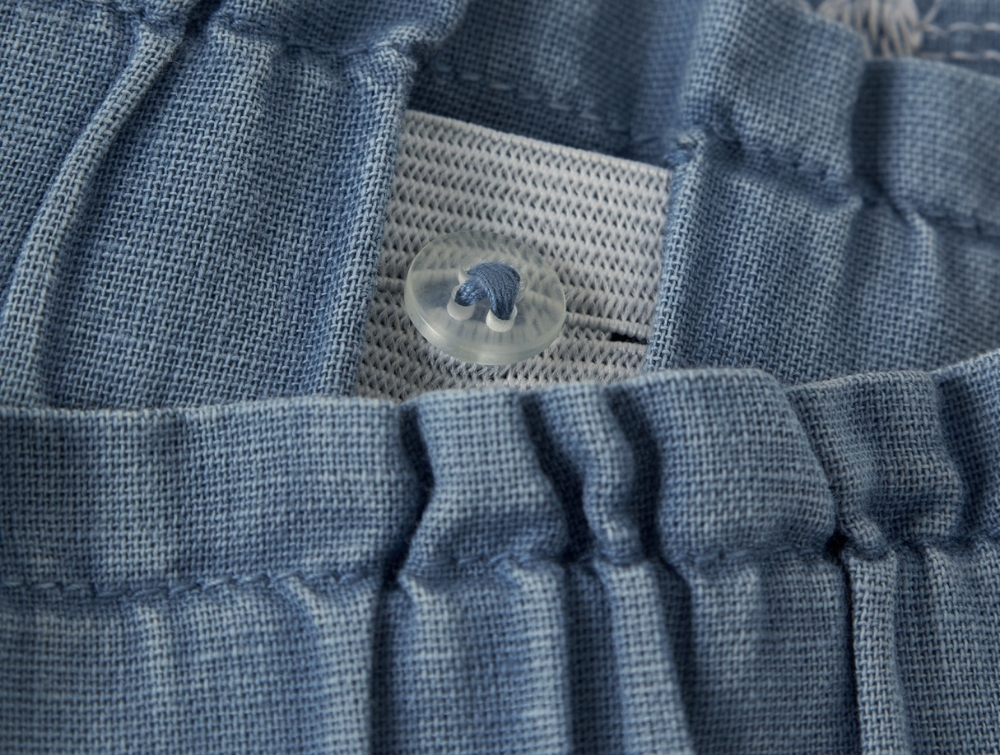 Shortsene er fremstillet i let chambray med bomuld og hør, som giver en blød og luftig kvalitet. Den justerbare talje gør det nemt at tilpasse pasformen og sikrer god bevægelsesfrihed.