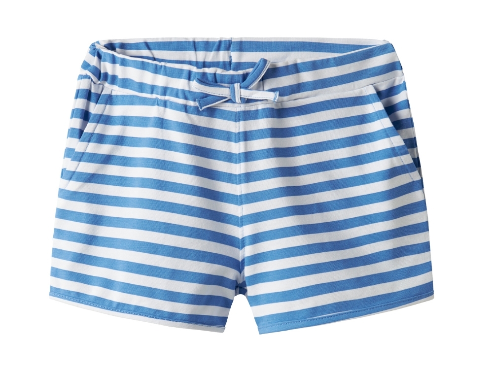 Shorts i klassisk blå-hvid stribet design (marina) fra Name It. Modellen har justerbar talje og bindebånd foran.
