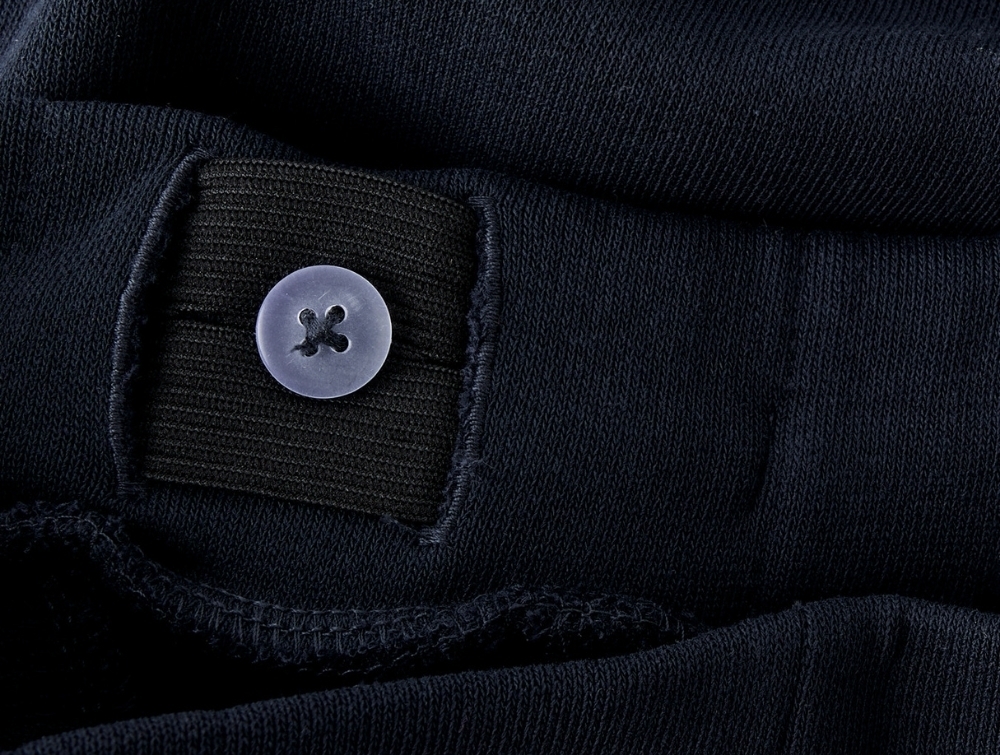 Designet har almindelig pasform og justerbar talje, så pasformen let kan tilpasses. Den mørke farve kombineret med badge-detaljen giver et enkelt og sporty udtryk.