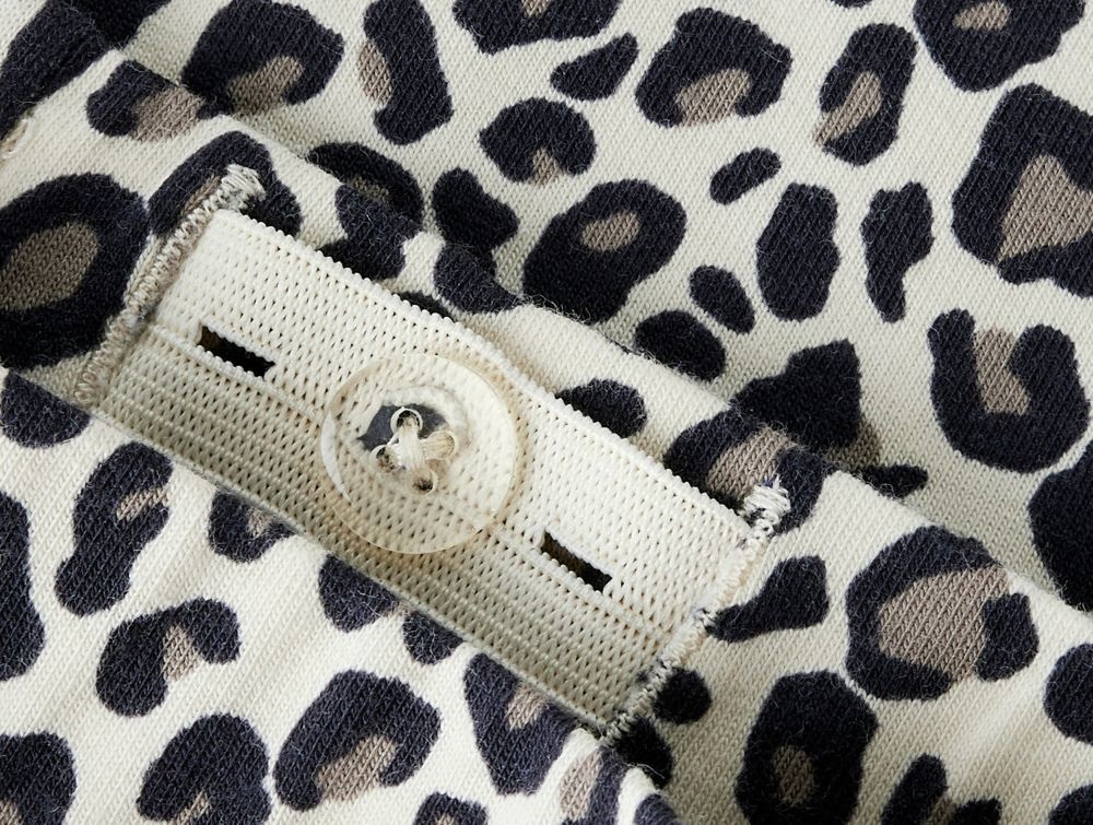 name it shorts i beige med leopardprint, set forfraname it shorts i beige med leopardprint, set bagfradetaljebillede af justerbar elastik i leopardprintede shorts fra name it
