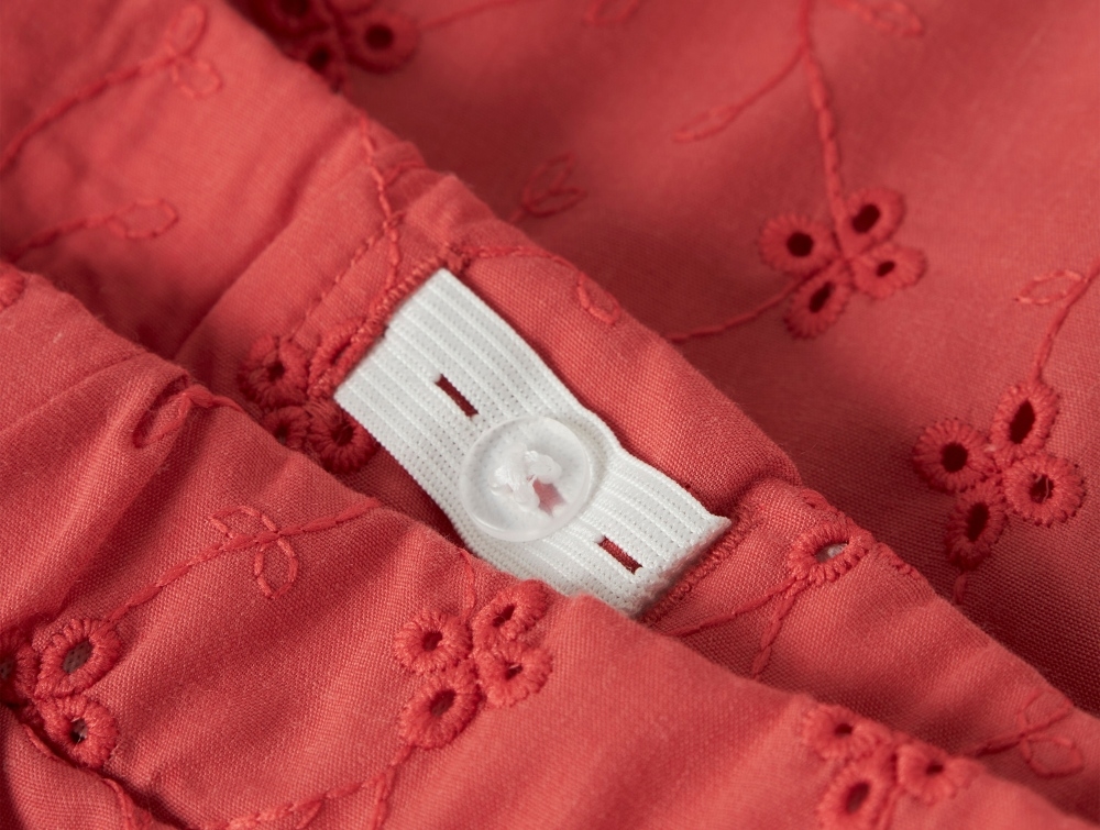 broderede shorts fra Name It i koralrød nuance med justerbar taljeelastik og justering i taljen på koralfarvede shorts fra Name It