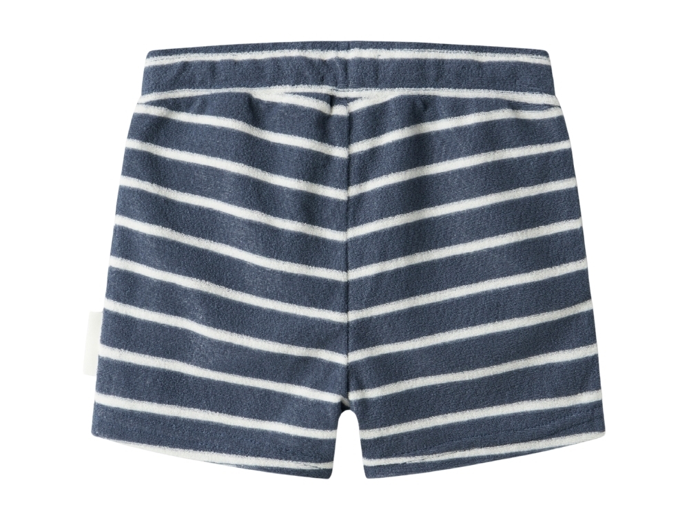 Name It shorts blå med hvide striber til børnName It stribede shorts vintage indigo med snøreName It børne shorts i frotté kvalitet med striberName It shorts vintage indigo med striber set bagfra
