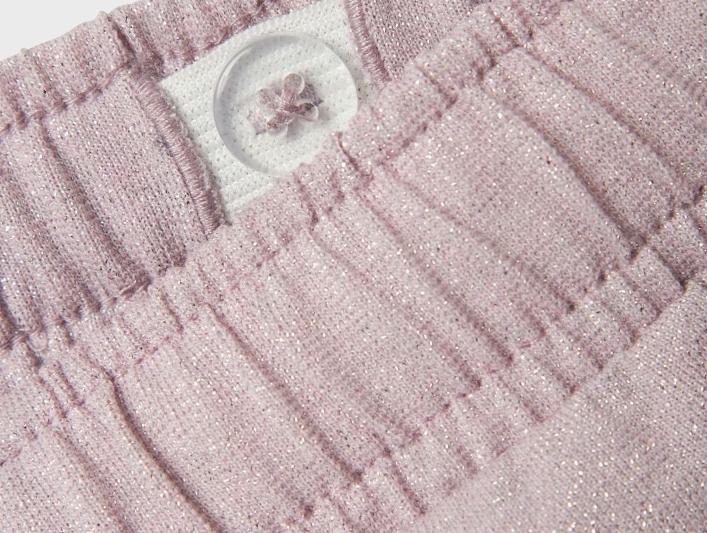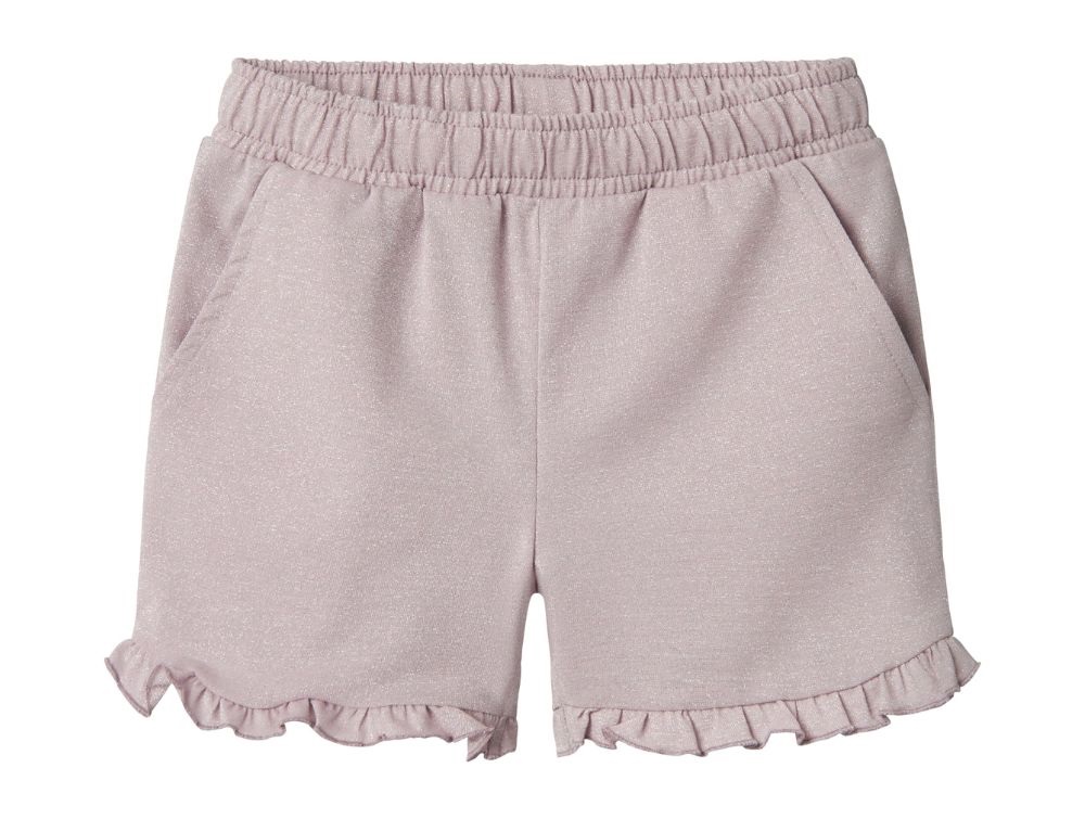 Shorts fra Name It i rosa (sweet dreams) med diskret glimmereffekt og fine flæser ved benåbningen.