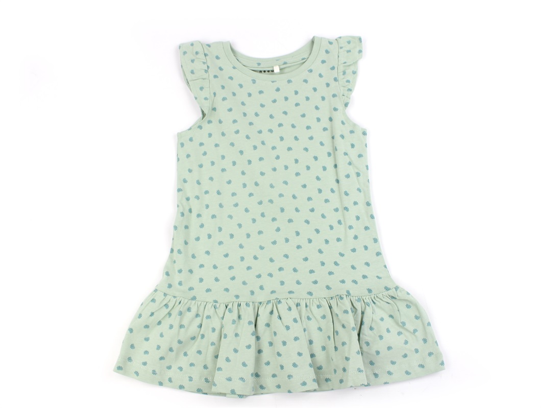 Kjole i farven silt green med print af muslingeskaller fra Name It.