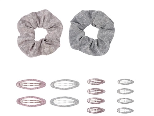 Hårsæt med 2 hårelastikker og 12 hårspænder i forskellig størrelse og farve fra Name It.