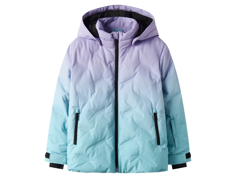 Skijakke i lillaog turkise nuancer (sunlit allium) fra Name It.