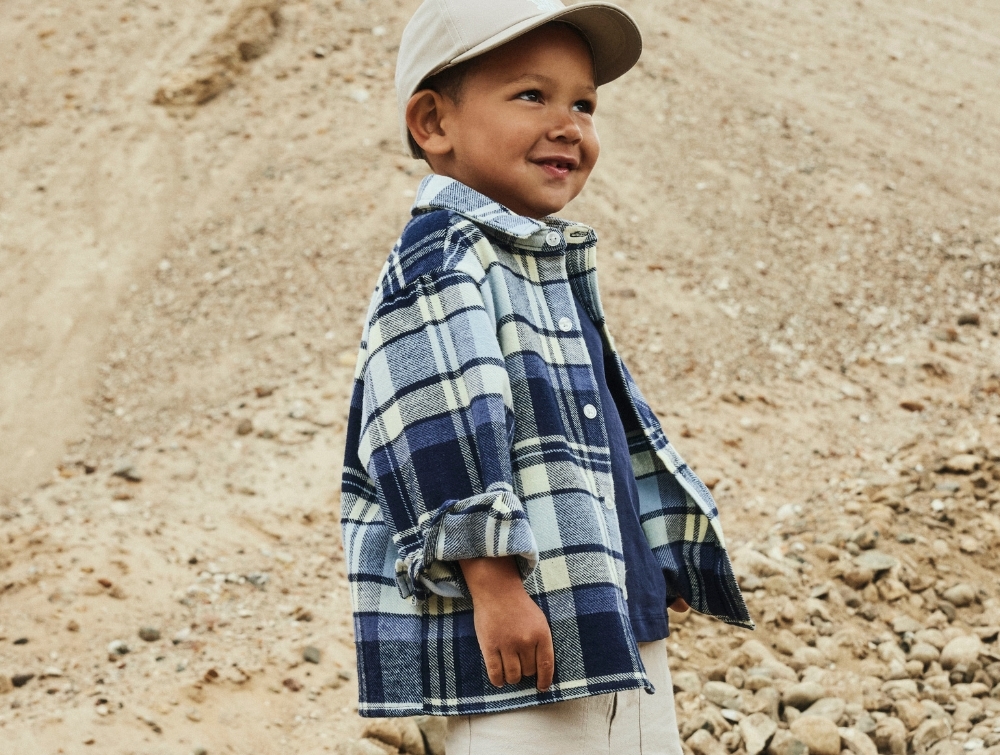Materialet er let og slidstærkt bomuld, hvilket giver en behagelig følelse og god bevægelsesfrihed til børn i hverdagen. Den vævede struktur giver skjorten et klassisk udtryk.