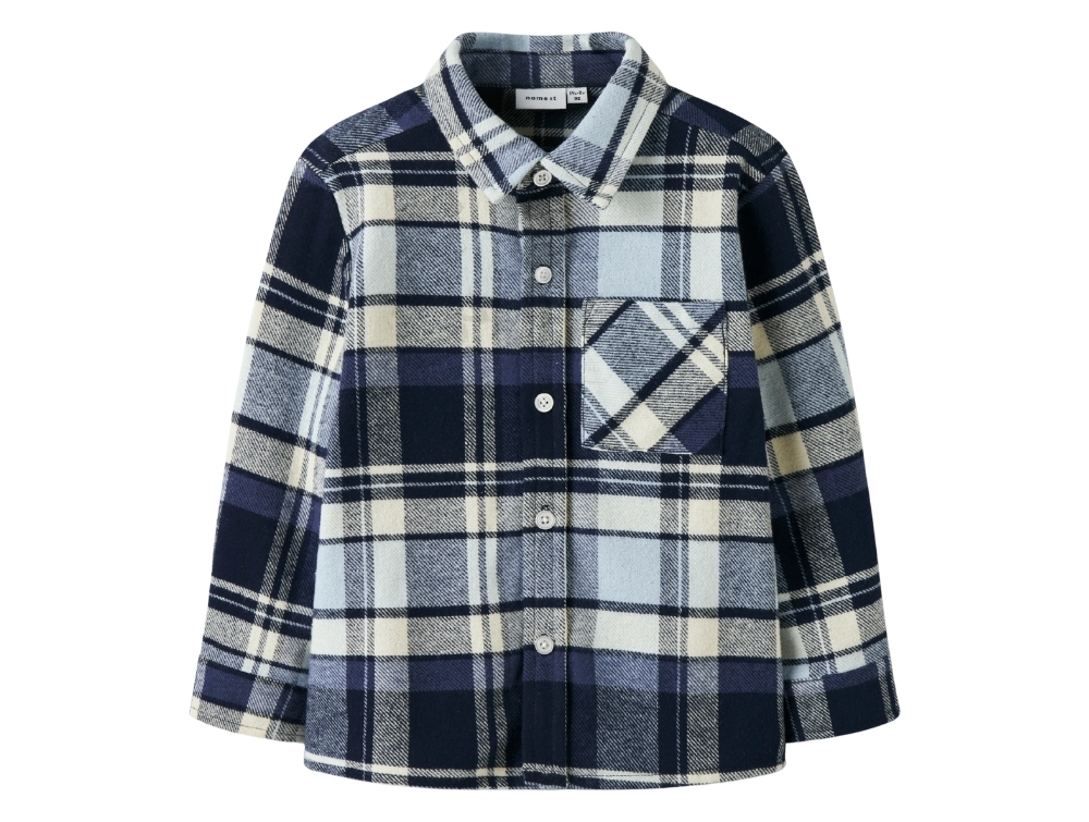 Skjorte i blå nuance (blue fog) fra Name It med klassisk ternet mønster.
