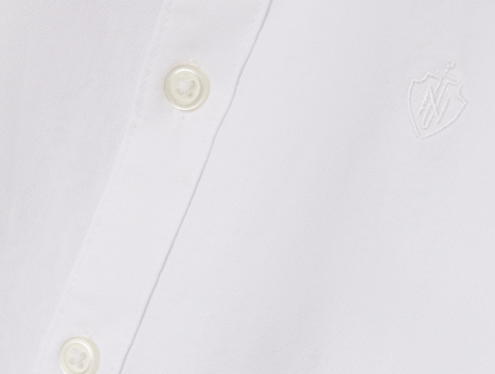 Modellen er lavet i klassisk oxfordvævet bomuld med en let struktureret overflade, som giver et pænt og enkelt udtryk.