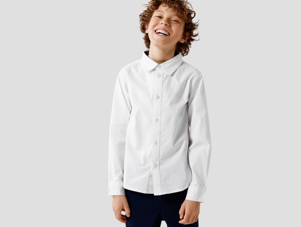 Name It skjorte hvid oxford på modelName It skjorte hvid med knapper foranName It skjorte hvid detalje med broderet logo og knaplukningName It skjorte hvid bagfra