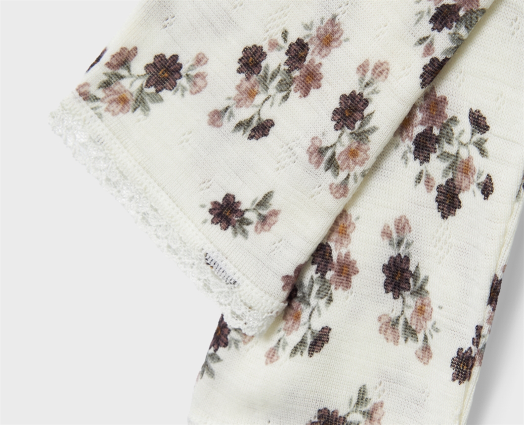 Legging i lækker merinould i farven snow white med blomsterprint fra Name It.