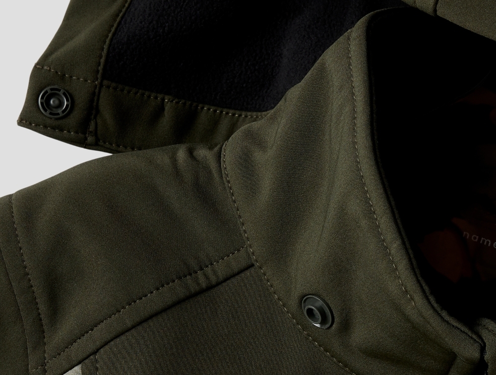 Mere information om Name It softshell jakke dusty olive med aftagelig hætte